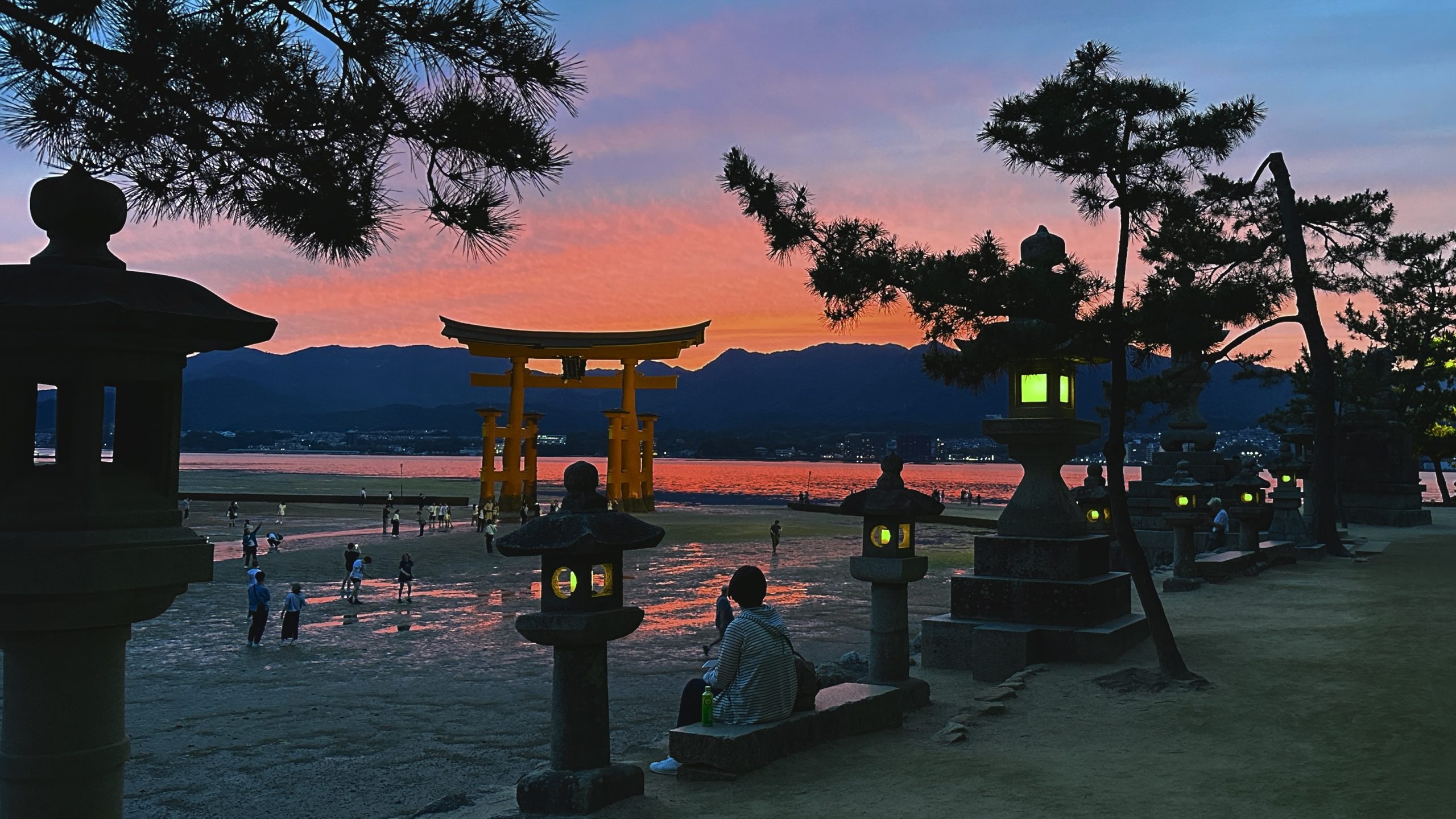 朝の人が少ない時間帯の宮島を見ることができたり、帰り際にとってもキレイな夕日が見られることもあります。